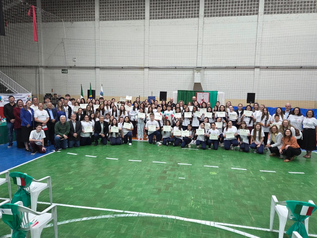 Os premiados do 5º Concurso Hedi Damian foram apresentados na solenidade de entrega das certificações aos participantes nesta quarta-feira, dia 8, em Urussanga. O evento realizado no Ginásio Centenário contou com a presença de autoridades, professores, familiares e demais convidados. Ao todo, 90 alunos de nove escolas da cidade participaram do concurso, com dissertações e poesias inspiradas no tema "Histórias de vida dos nonnos e nonnas”.