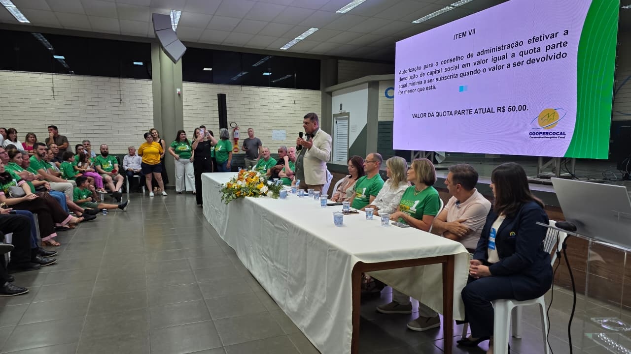 Com expressiva participação dos associados, a Cooperativa Energética Cocal do Sul (Coopercocal) realizou na noite desta sexta-feira, 23 de janeiro de 2026, sua Assembleia Geral Ordinária (AGO). O encontro aconteceu na sede recreativa da cooperativa, em Cocal do Sul, em terceira chamada, conforme prevê o estatuto.