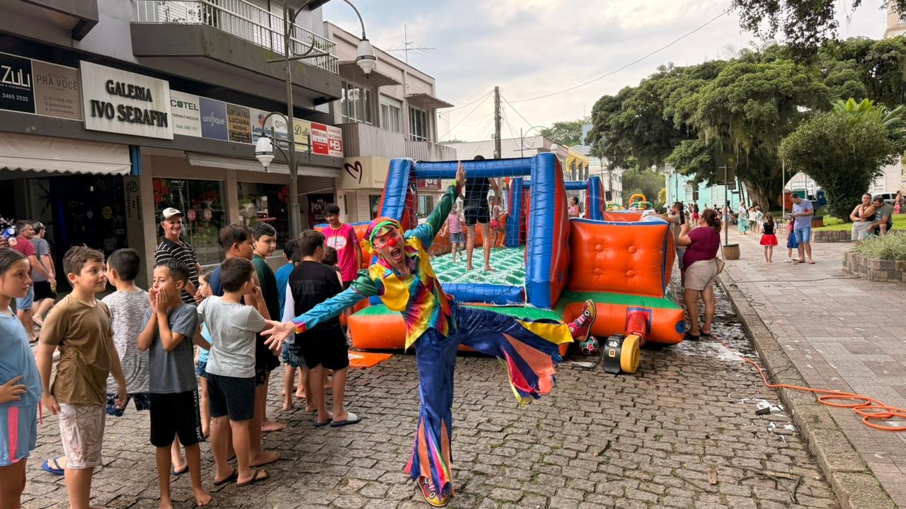 O Centro Histórico foi o palco da alegria e diversão com a realização de mais uma edição do Bloco da Benedetta na terça-feira, dia 17, em Urussanga. O evento promovido pelo Governo Municipal por meio da Secretaria de Cultura, Turismo e Esporte, contou com uma programação voltada para crianças e adultos e conseguiu manter a animação mesmo diante da chuva e da interrupção no fornecimento de energia elétrica.