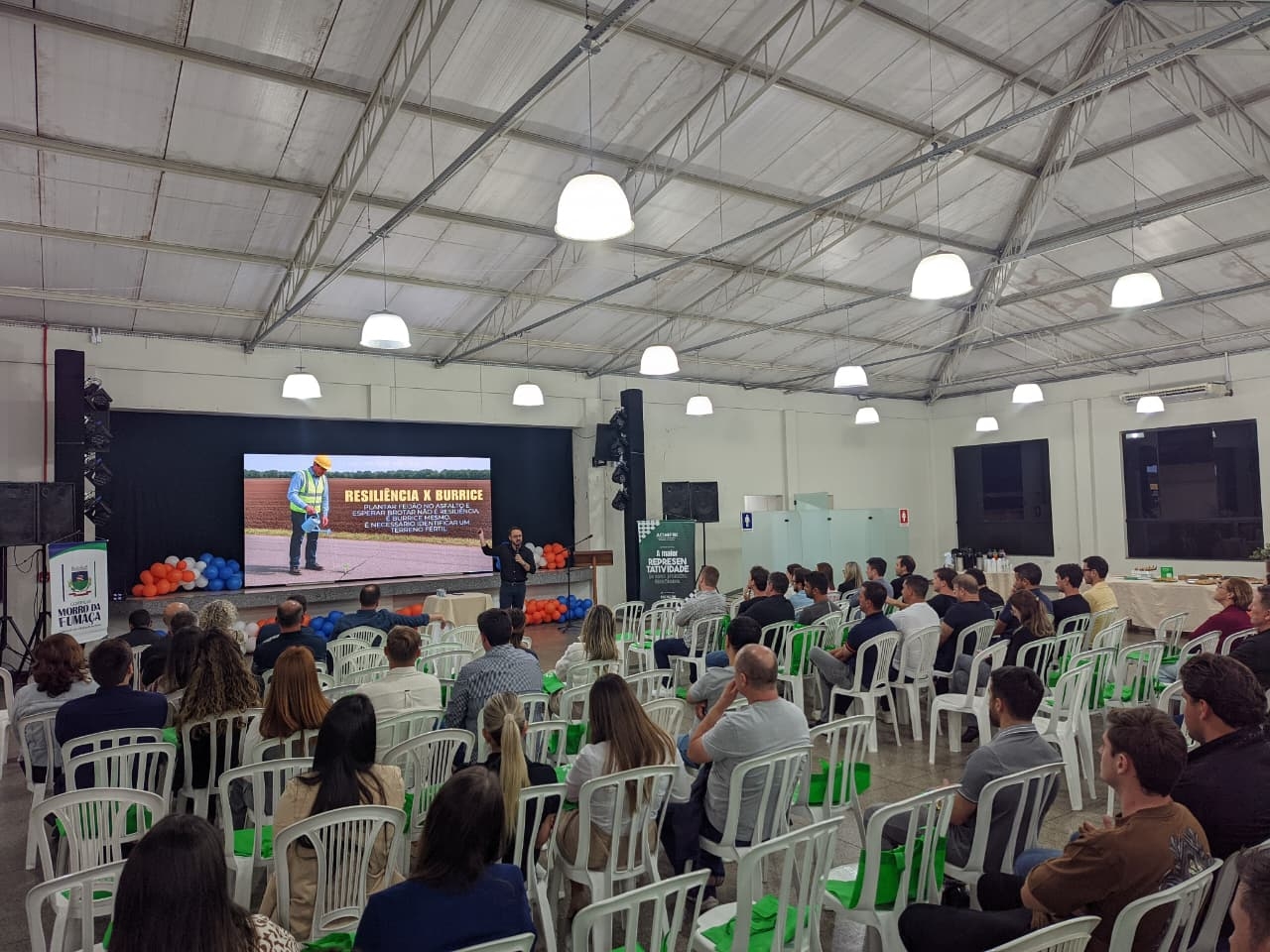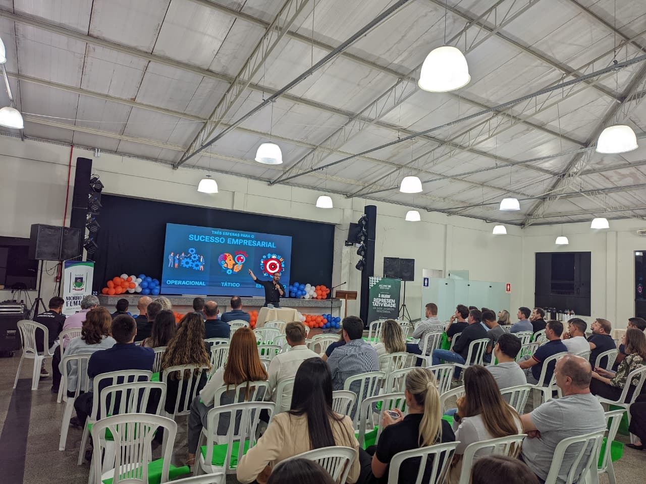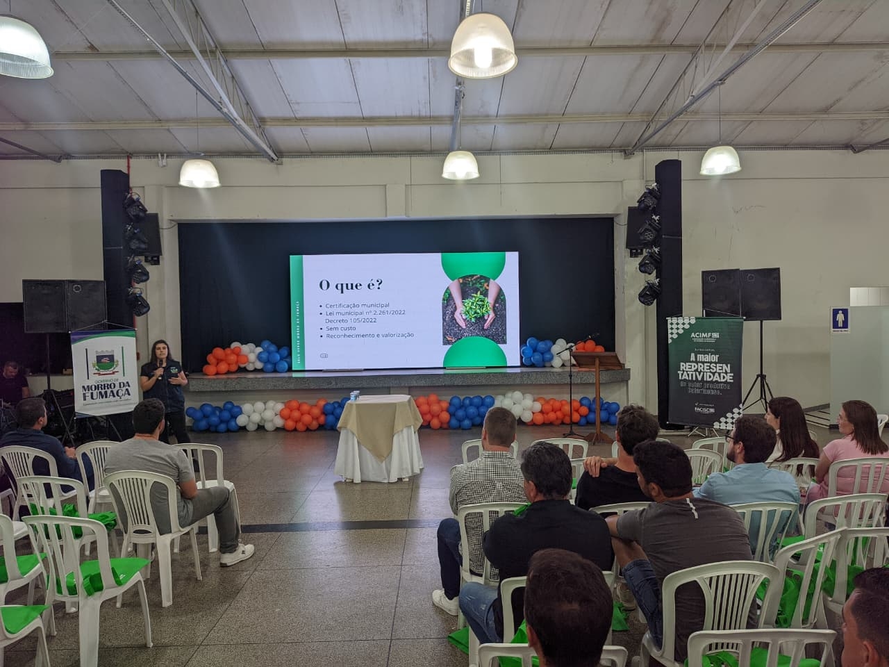 Promovendo um momento de incentivo à inovação e ao conhecimento nos negócios, o Governo de Morro da Fumaça, por meio da Sala do Empreendedor e em parceria com a Associação Empresarial de Morro da Fumaça (Acimf), promoveu, na noite desta segunda-feira, 17 de novembro, um evento para celebrar a Semana Municipal do Empreendedorismo. O evento, realizado no Salão Paroquial da Igreja Matriz São Roque, contou com a palestra do fundador e CEO da empresa Brasil ao Cubo, Ricardo Mateus, apresentações de representantes da Satc, Unesc e da Fundação Municipal do Meio Ambiente (Fumaf) fumacense, destacando como os empresários podem aderir ao Selo Verde de Morro da Fumaça, em um momento de networking entre os presentes.