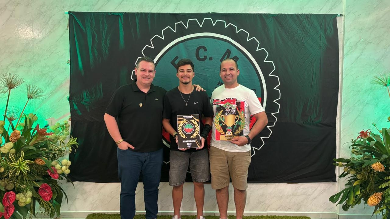 Os atletas de Morro da Fumaça, Kauã Vieira e Sueder Alano Vieira, foram homenageados pela Federação Catarinense de Motociclismo (FCM) durante a cerimônia oficial de premiação da temporada 2025, realizada neste sábado, 31 de janeiro, em Florianópolis. O evento reuniu os principais destaques do motocross, reconhecendo o desempenho de pilotos que se destacaram ao longo do ano.