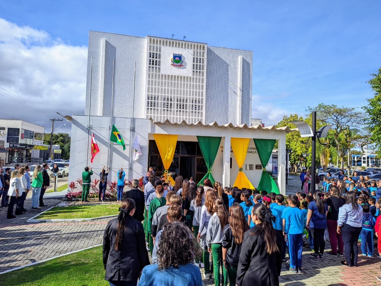 A Semana da Pátria 2025 em Morro da Fumaça começou nesta segunda-feira, 1º de setembro, com emocionante abertura em frente à Prefeitura. Com a participação da Banda Municipal, os alunos do Centro Educacional Davi, do Colégio Interação, da Escola Estadual Princesa Isabel, das escolas municipais Zuleima Búrigo Guglielmi, Pietro Maccari e Maurina de Souza Patrício, e dos Centros de Educação Infantil Honorata Pavei Maccari e Vanolda Gregório Espíndola encantaram a comunidade, mostrando talento e amor à pátria.
